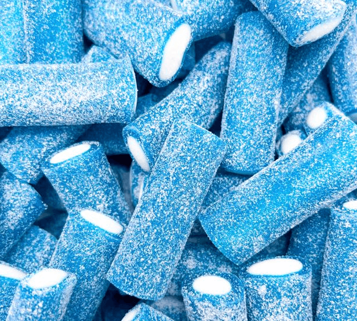 Sirop de glucose, sucre, farine de blé, dextrose, eau, amidon de blé, acidifiants : E296, E330 ; gélatine, arômes, concentrés (radis, pomme, cassis), sel, agents d’enrobage : huiles végétales (coprah, colza), cire de carnauba, colorant : E133.