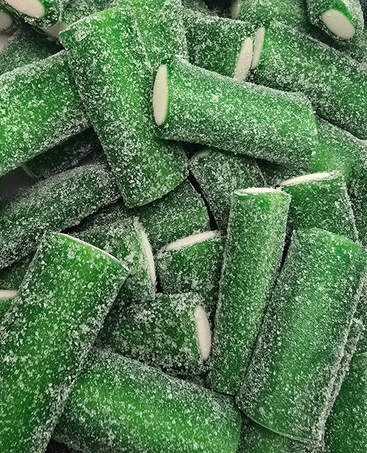 Sucre, sirop de glucose-fructose, eau, amidon de maïs, farine de BLÉ (gluten), dextrose, agent stabilisant d'humidité (E420), acidifiants (E330, E296), gélatine, graisse de palme, correcteur d'acidité (E331), émulsifiant (E471), arôme, colorant (E133).