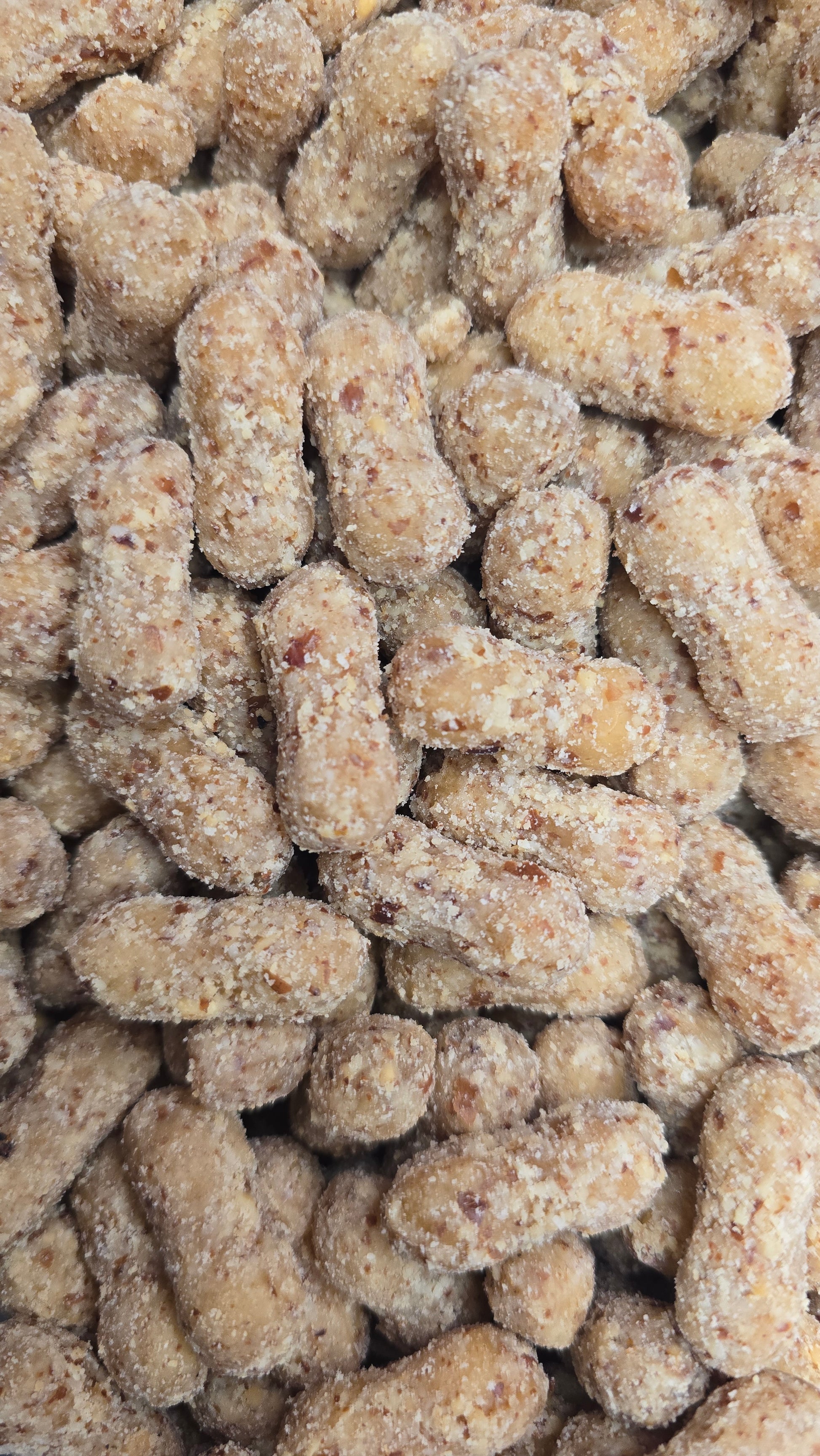 Sucre, Sirop de glucose, arachides 13%, amidon transformé de blé. sans colorants.