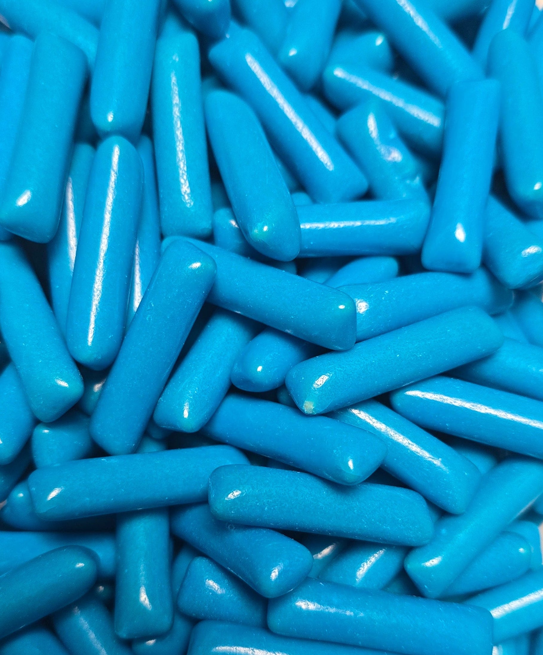 Sucre, sirop de glucose, dextrose, graisse de palme, 5% jus de fruits concentré (pomme, pêche, citron, fraise, framboise), gélatine (gélatine bovine), stabilisant: gomme arabique, amidon modifié, acidifiants: acide lactique, acide citrique, arômes, émulsifiant: lécithines, colorants: cochenille, curcumine, bleu brillant FCF, charbon végétal médicinal, agents d 'enrobage: cire de carnauba, shellac, cire d 'abeille blanche et jaune.