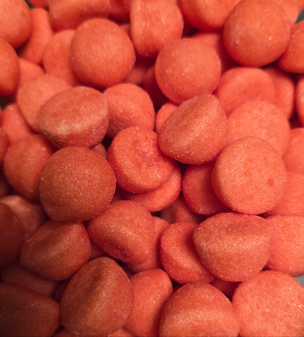 sucre; sirop de glucose; gélatine; acidifiant: acide citrique; arôme; concentrés de fruits et de plantes: radis, carotte, carthame, citron.